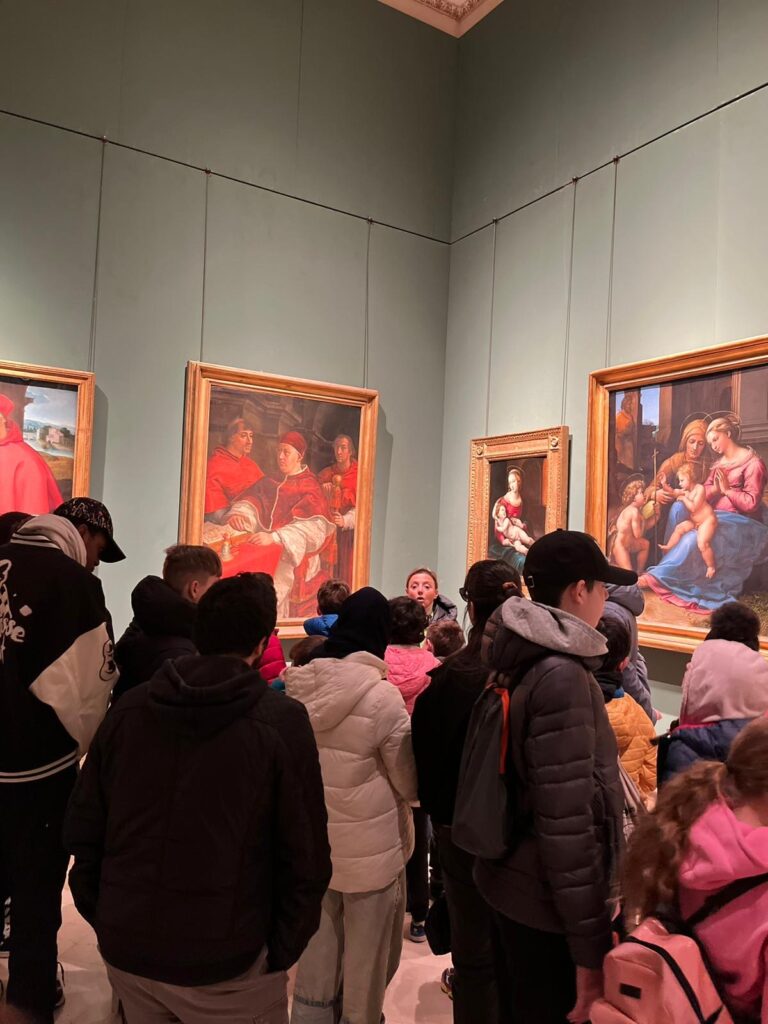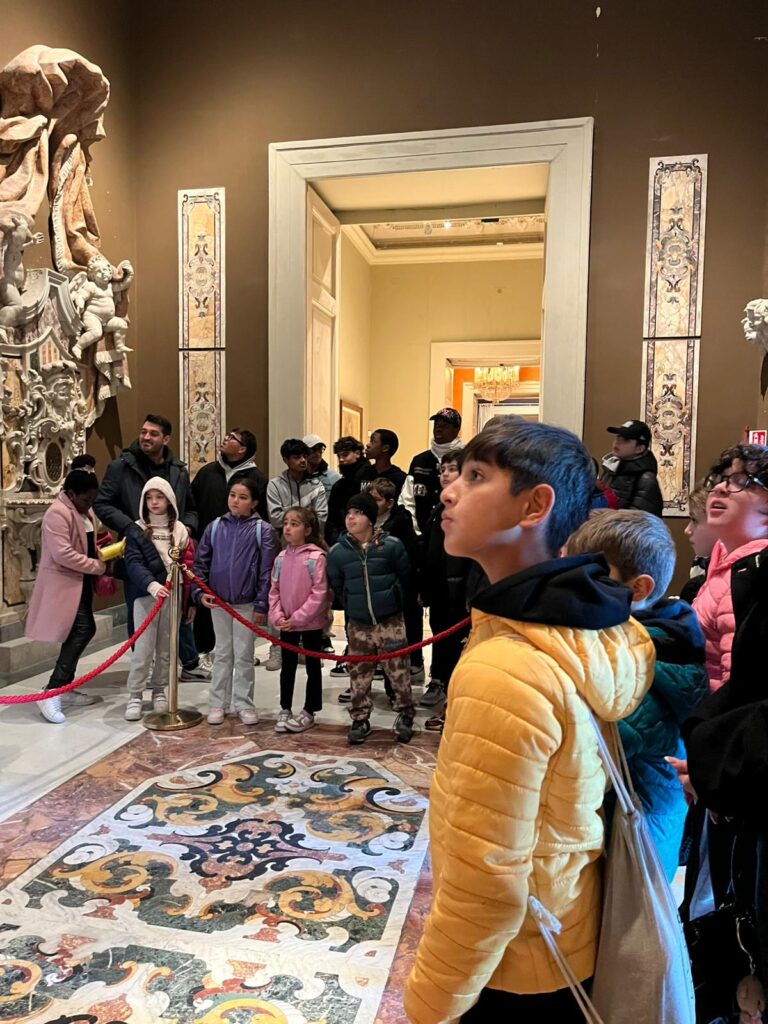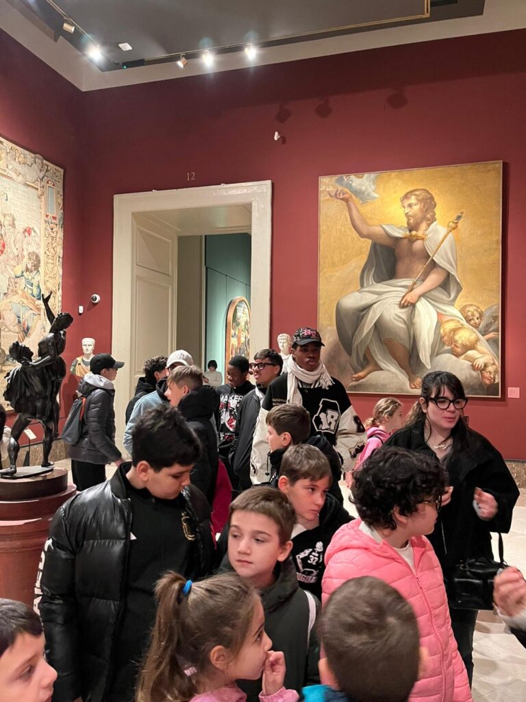 Il cuore dell’uscita è stata l’immersione nell’arte, resa particolarmente significativa grazie alla guida della Prof.ssa Lilly Ripa. Per circa un’ora, i ragazzi hanno percorso le sale del Palazzo Reale, un tempo residenza borbonica e oggi scrigno di tesori inestimabili. Il Museo di Capodimonte, infatti, è annoverato tra i più importanti d’Italia, conservando eccezionali raccolte d’arte che spaziano dai capolavori rinascimentali della Collezione Farnese – con opere di Tiziano, Raffaello e Michelangelo – fino alla ricca Galleria Napoletana, che documenta l’evoluzione artistica della città con lavori di maestri come Caravaggio e Luca Giordano. A ciò si aggiunge lo sfarzo dell’Appartamento Reale, che narra la vita delle corti attraverso arredi d’epoca e il celebre Salottino di Porcellana.
